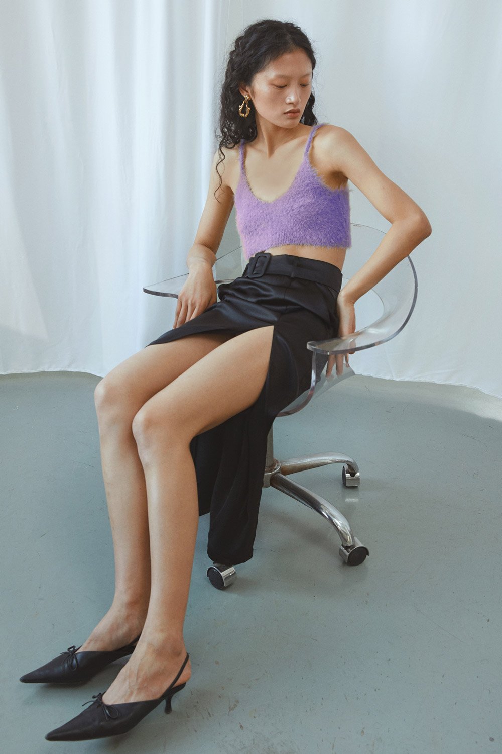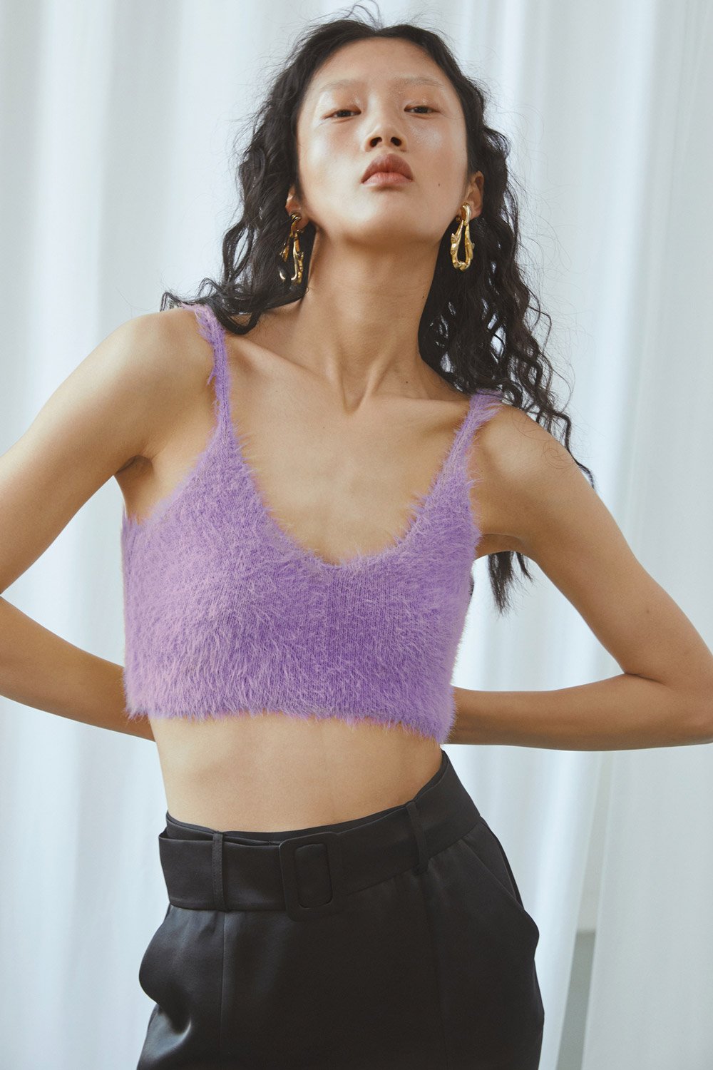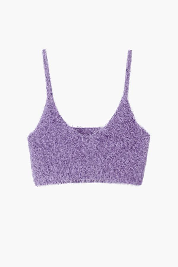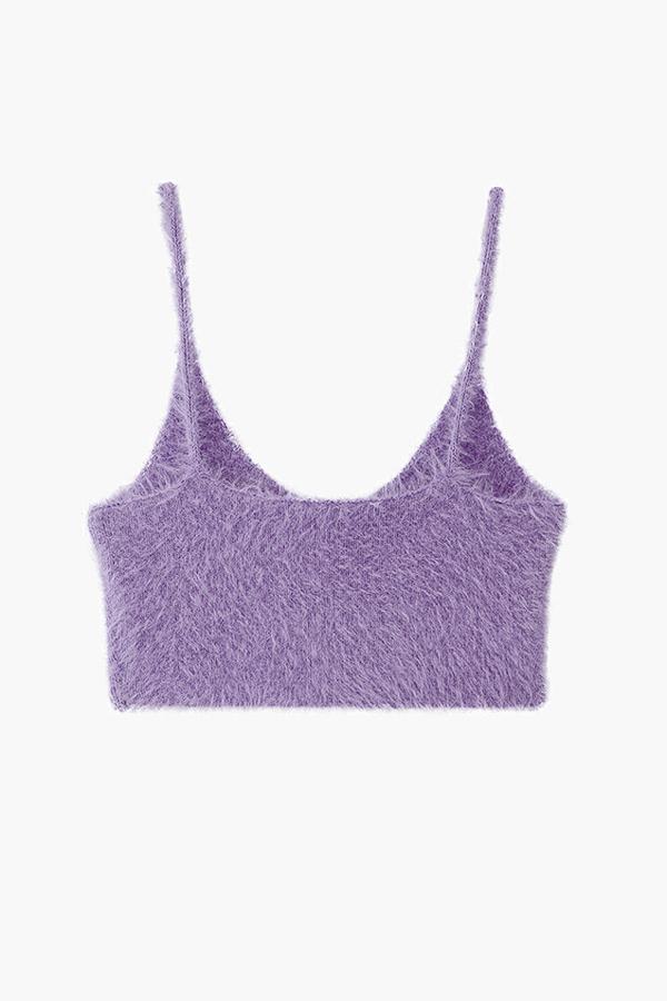 Lucency faux fur knitted crop top in citron purple.