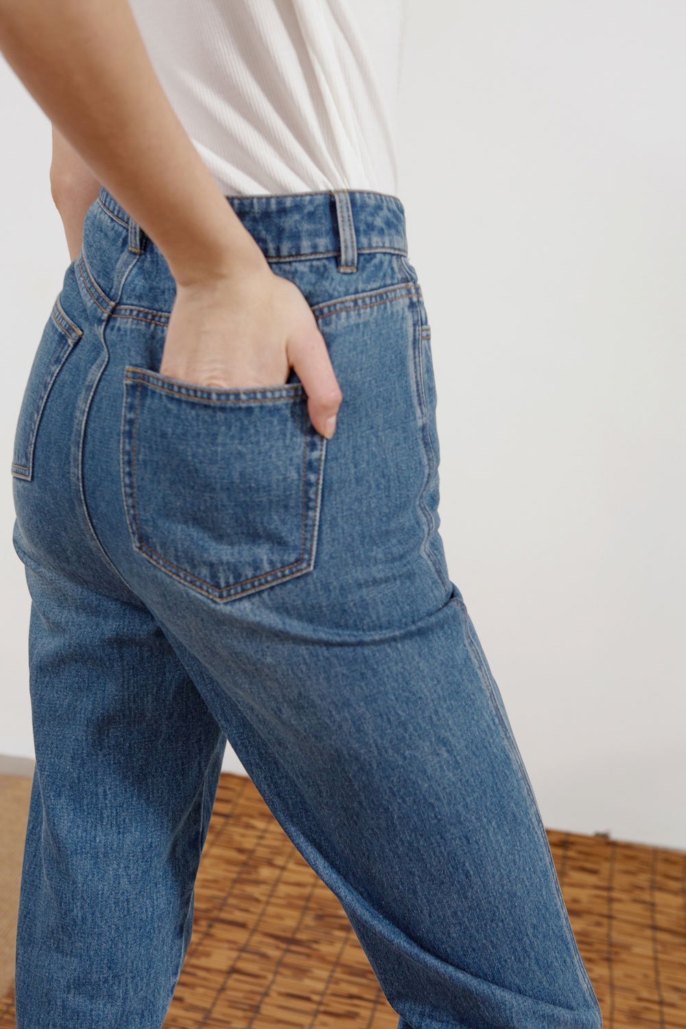 RLL Studio high-rise mother jeans with loose straight-leg and a slim high-waist.