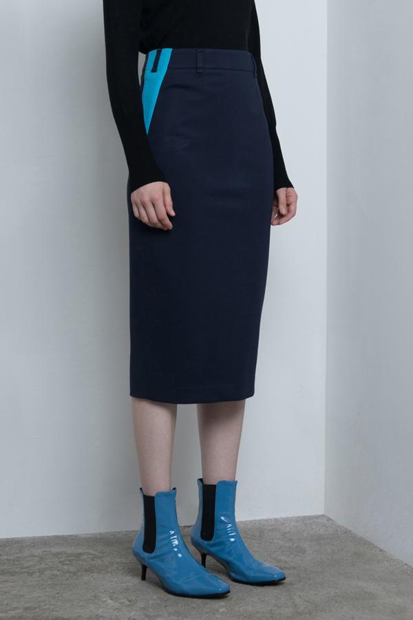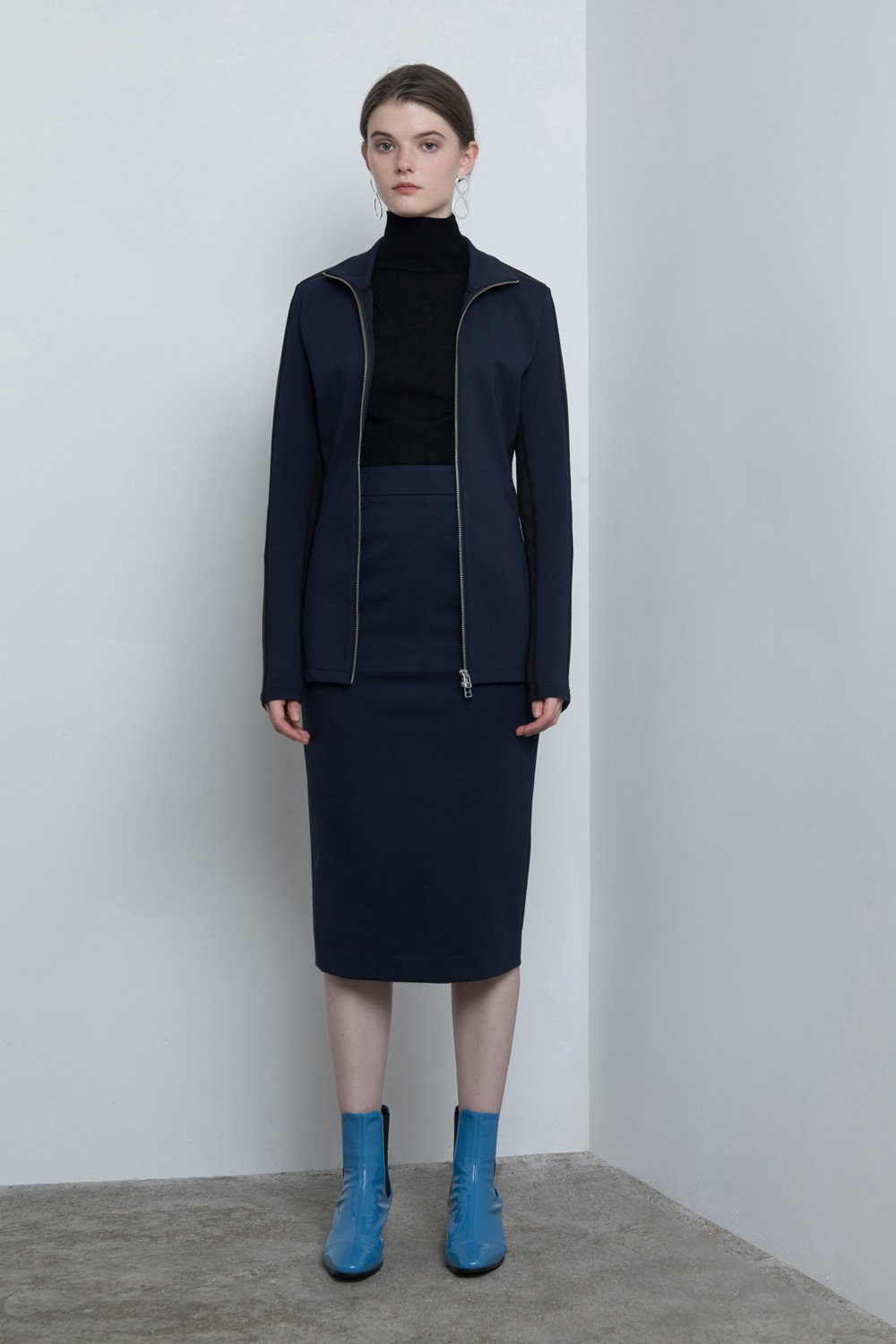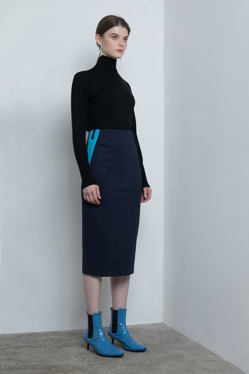 Yuel Xiang high-waist sporty pencil skirt in navy.