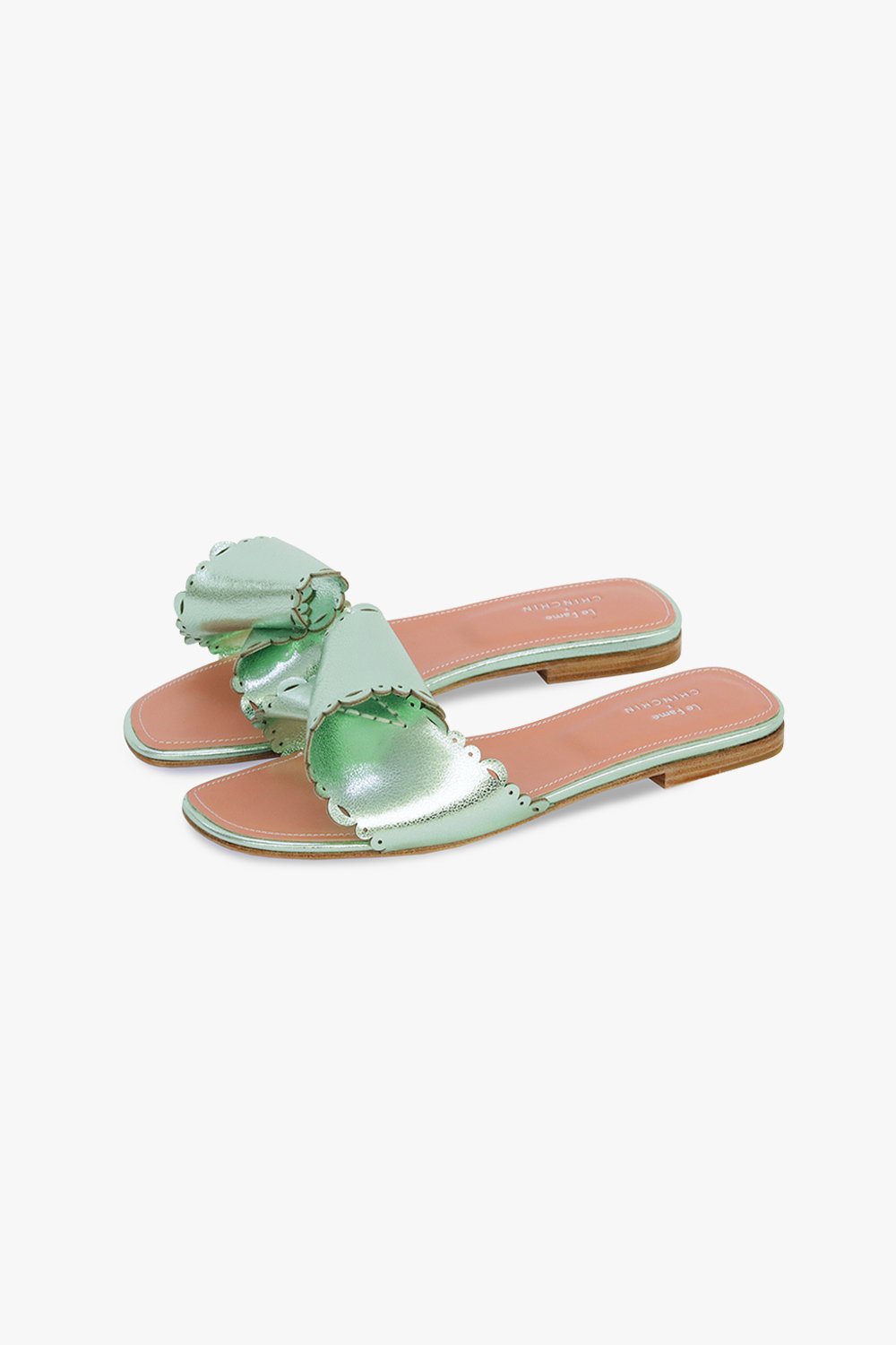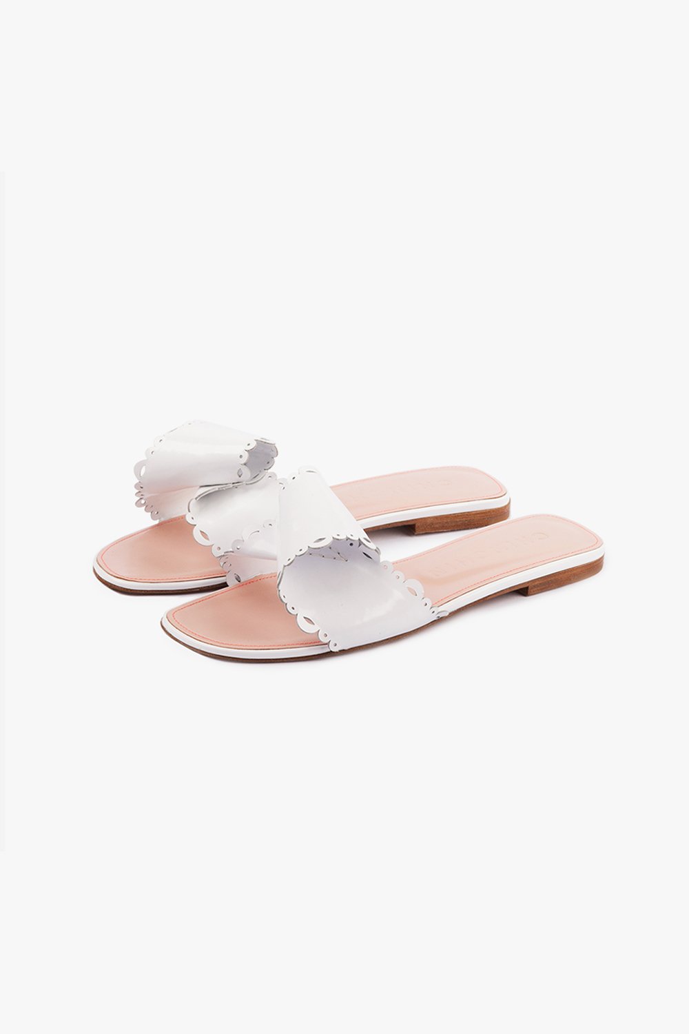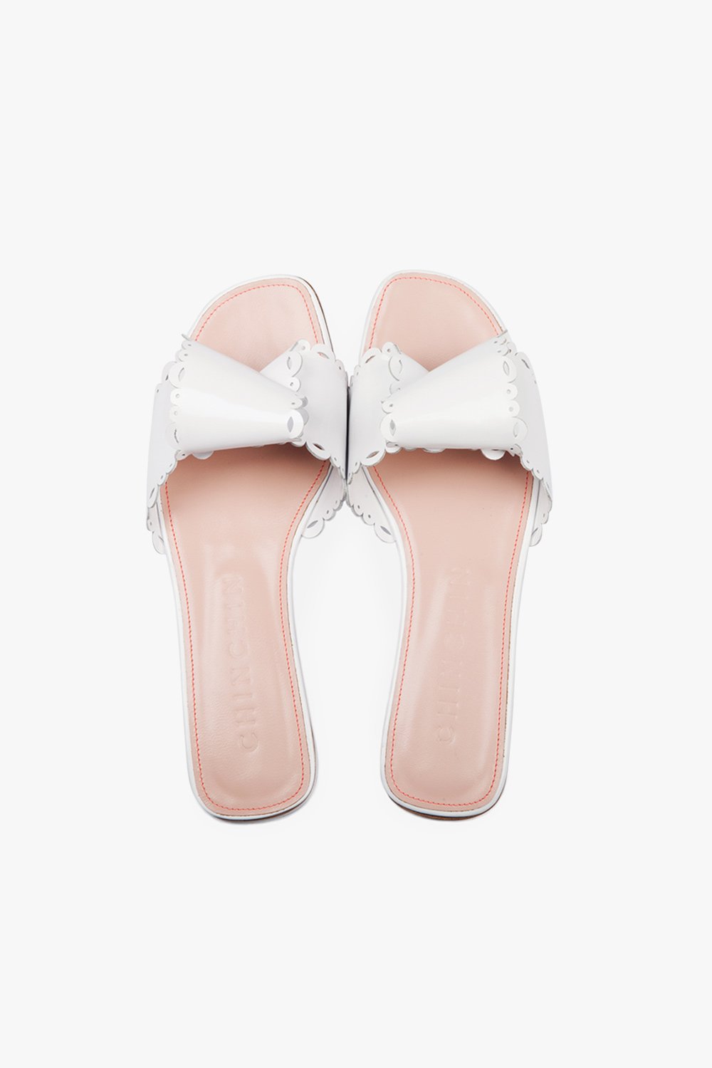 CHINCHIN laser cut leather flats in white.