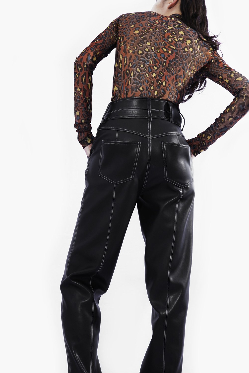 Lucency high-collar leopard print sheer mesh long-sleeved shirt.