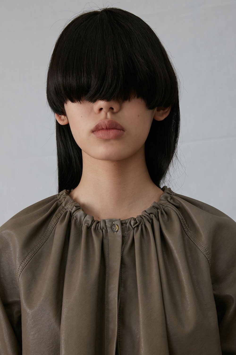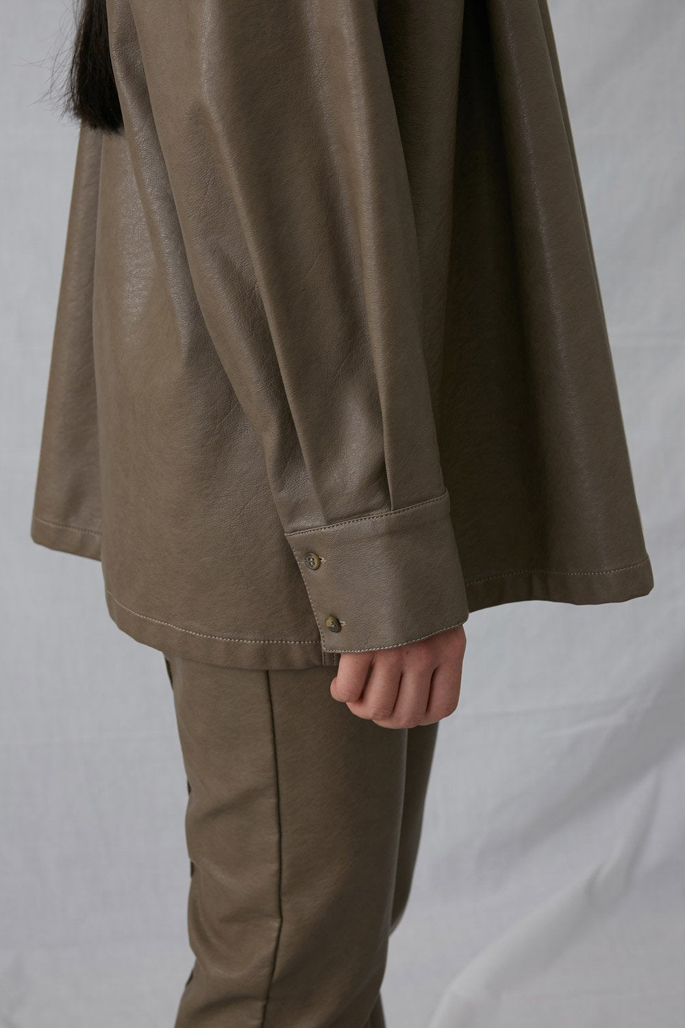 Trinite faux leather oversized button-down shirt with a removable collar.