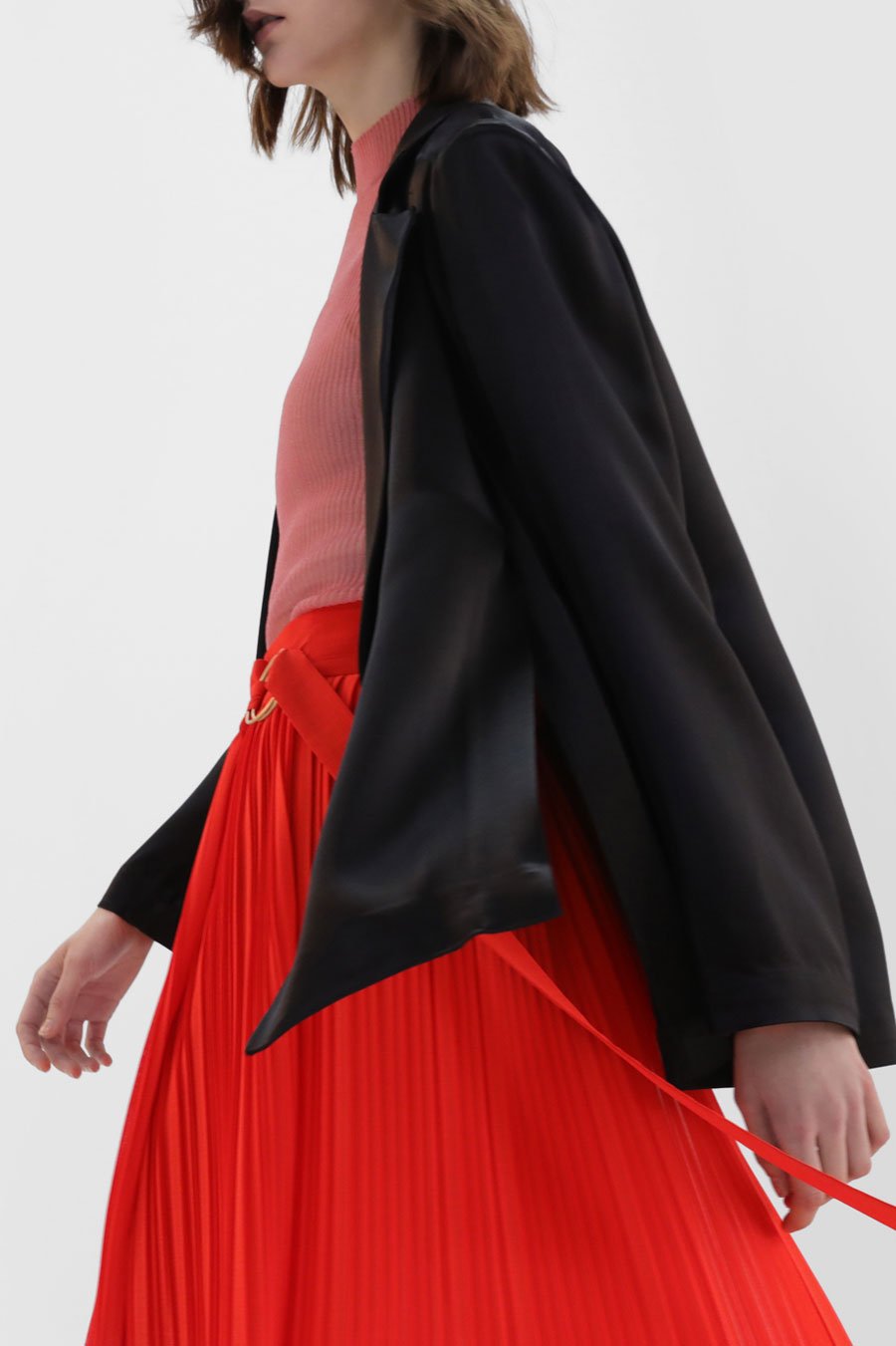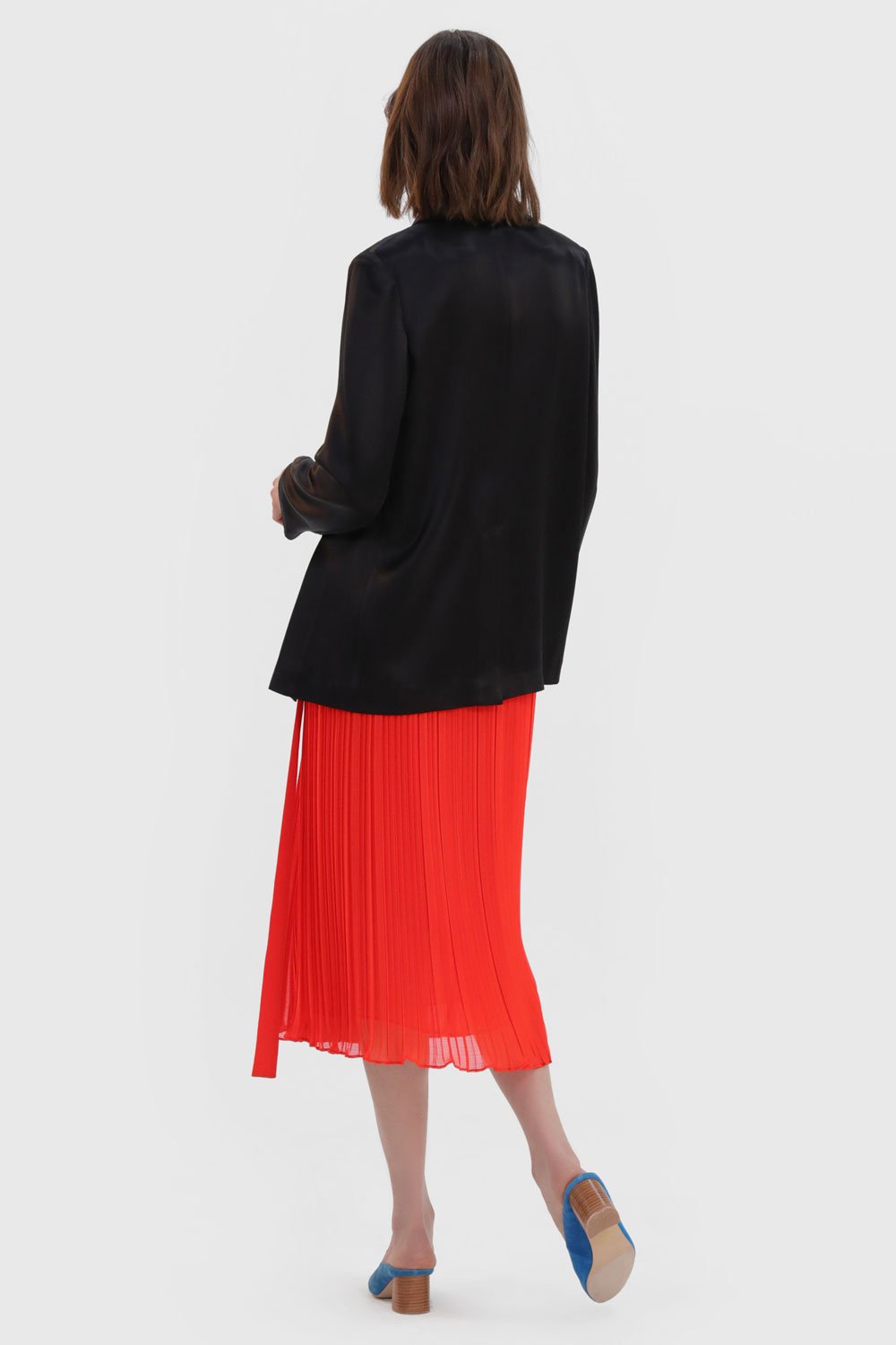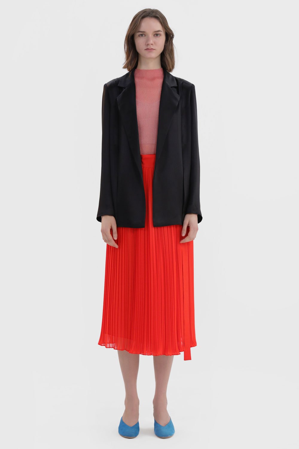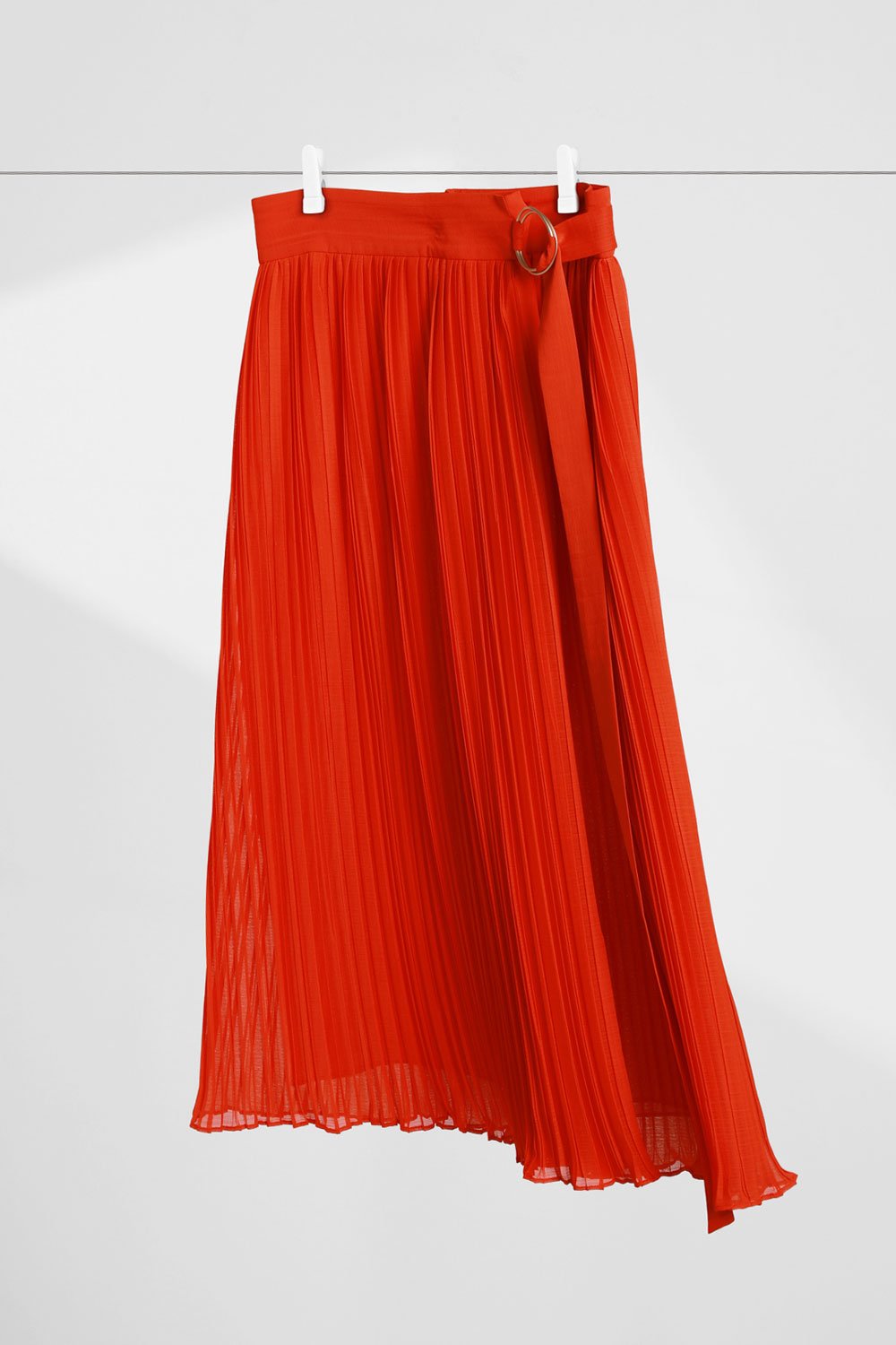 Yuel Xiang belted high-rise pleated chiffon skirt in crimson.