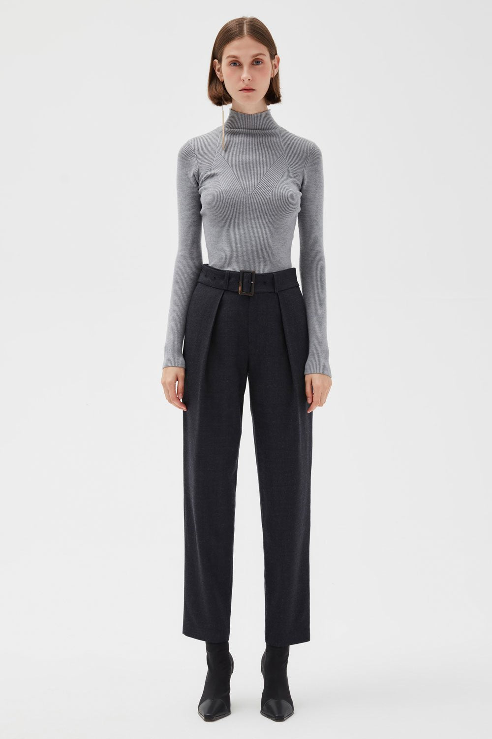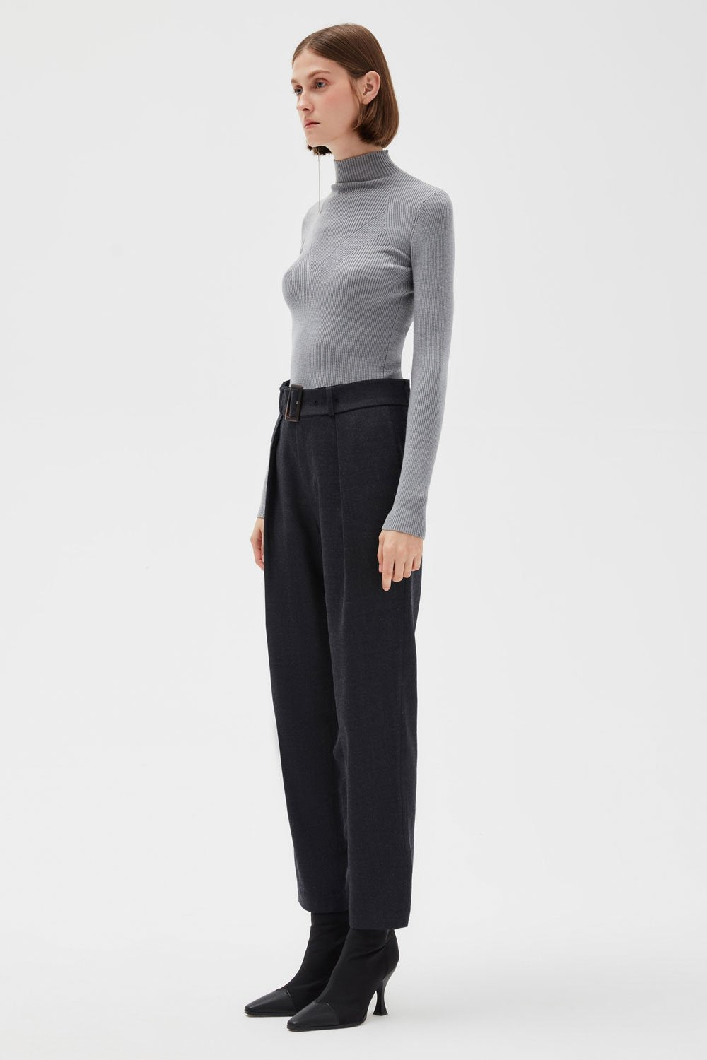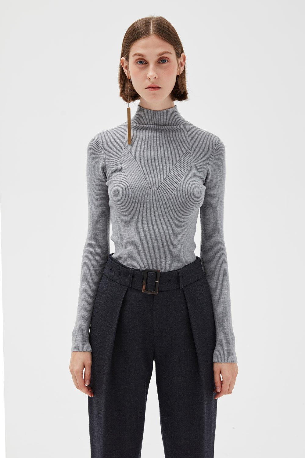 Insis Femme fitted high-neck ribbed shirt in grey.