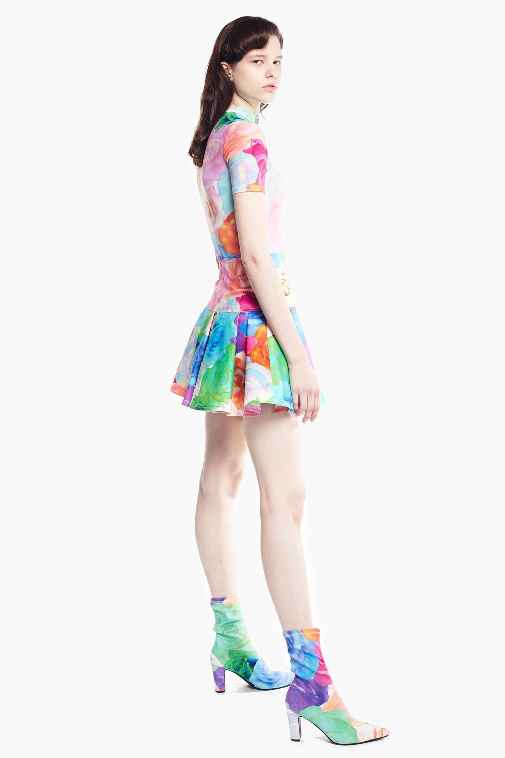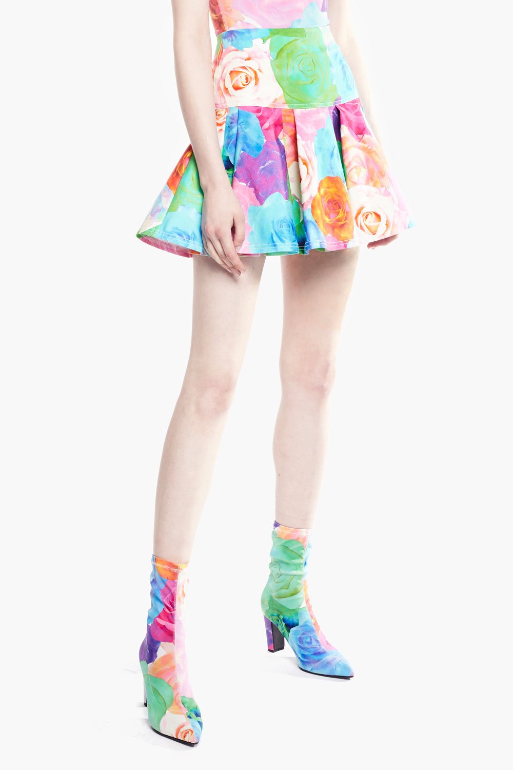 Chictopia rose print pleated mini tennis skirt.