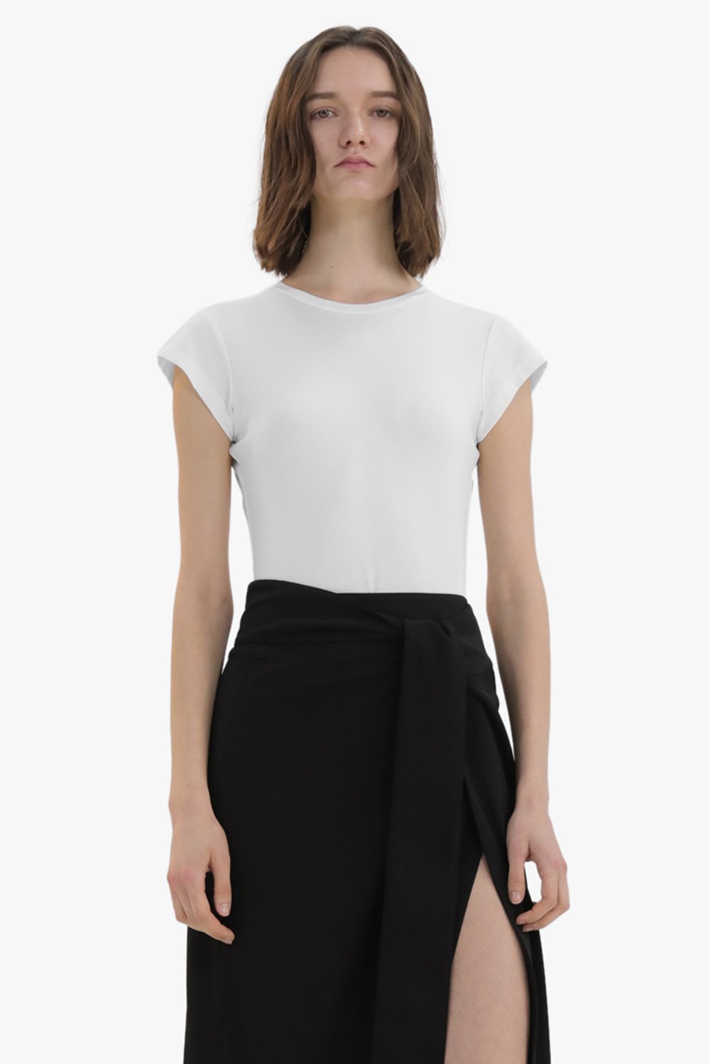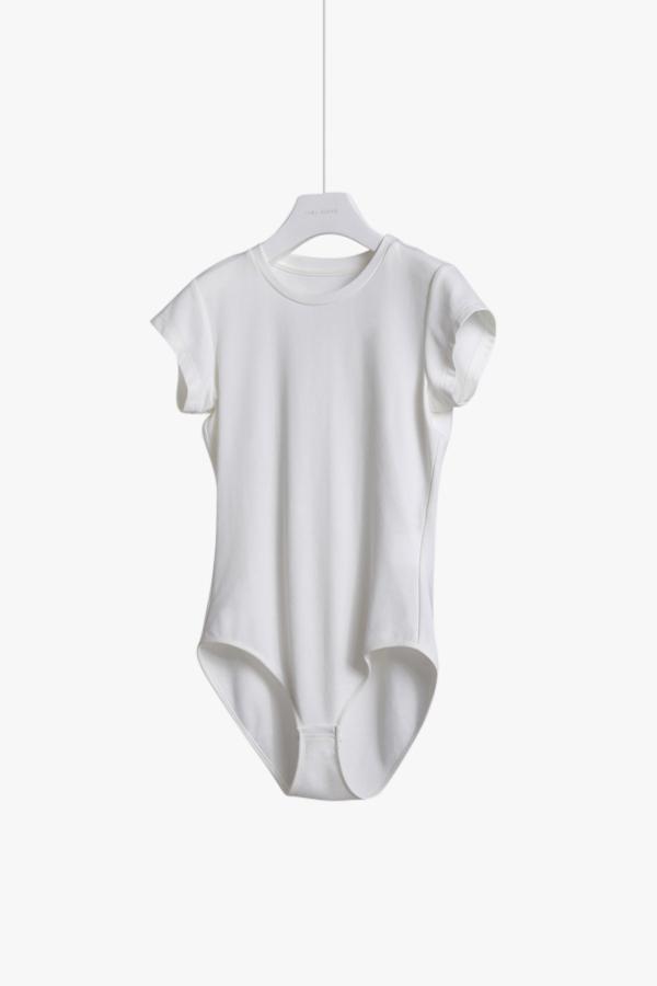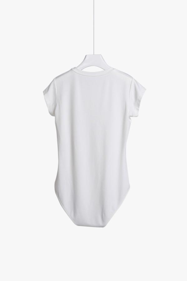 Yuel Xiang stretch knit short-sleeved bodysuit in white.