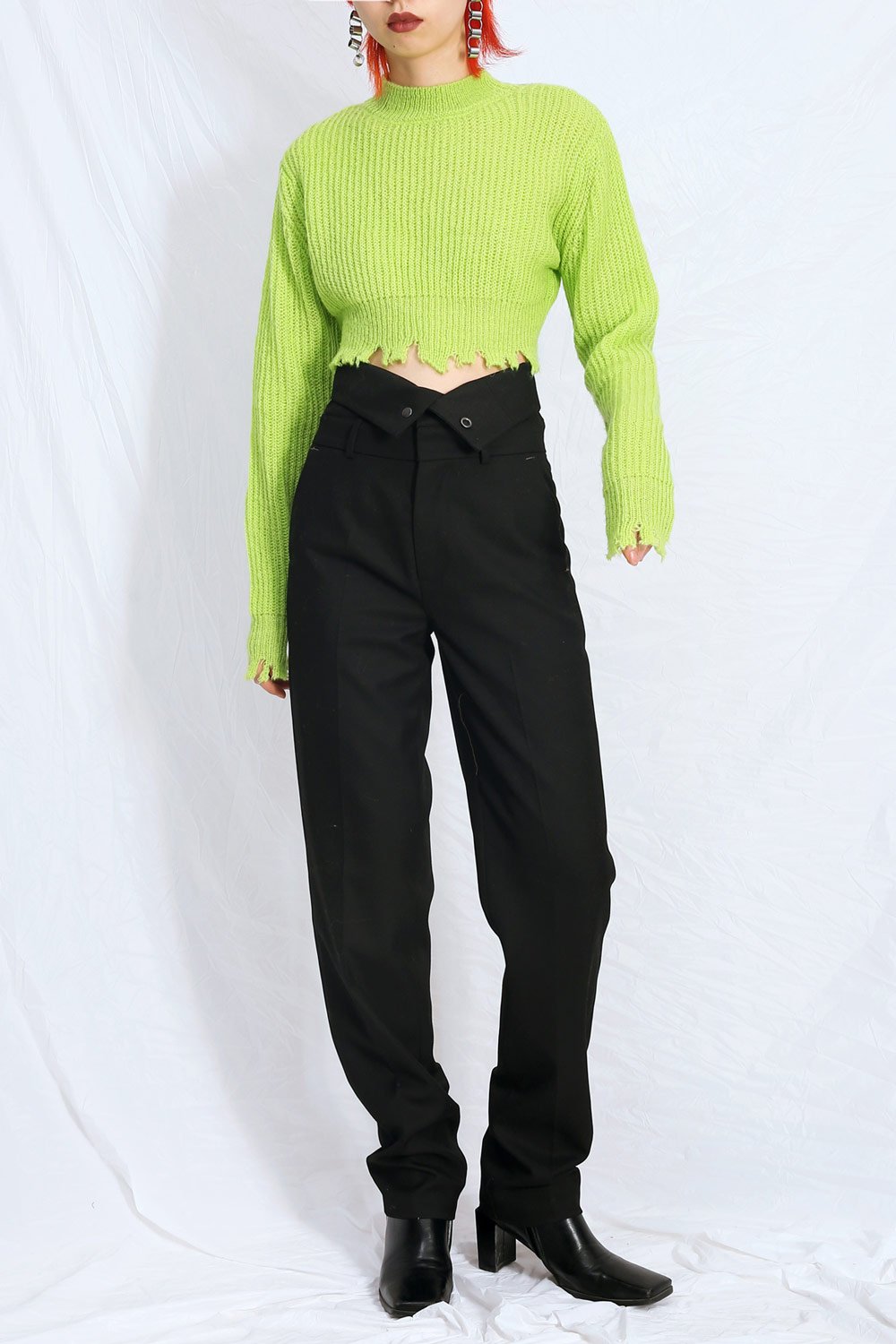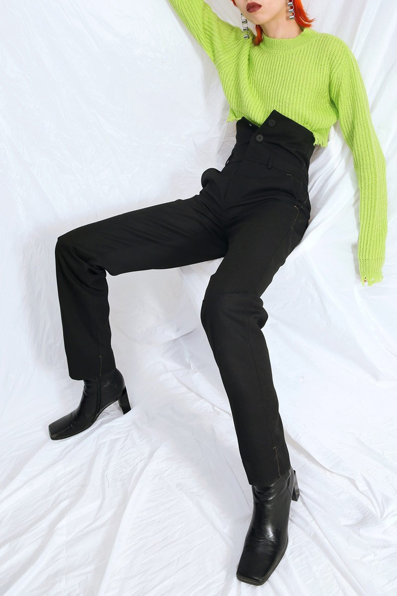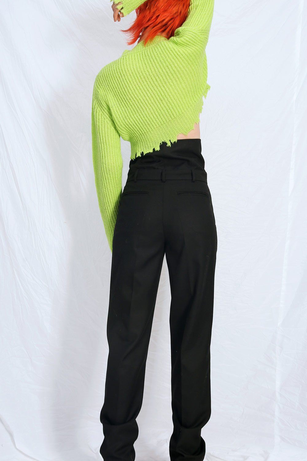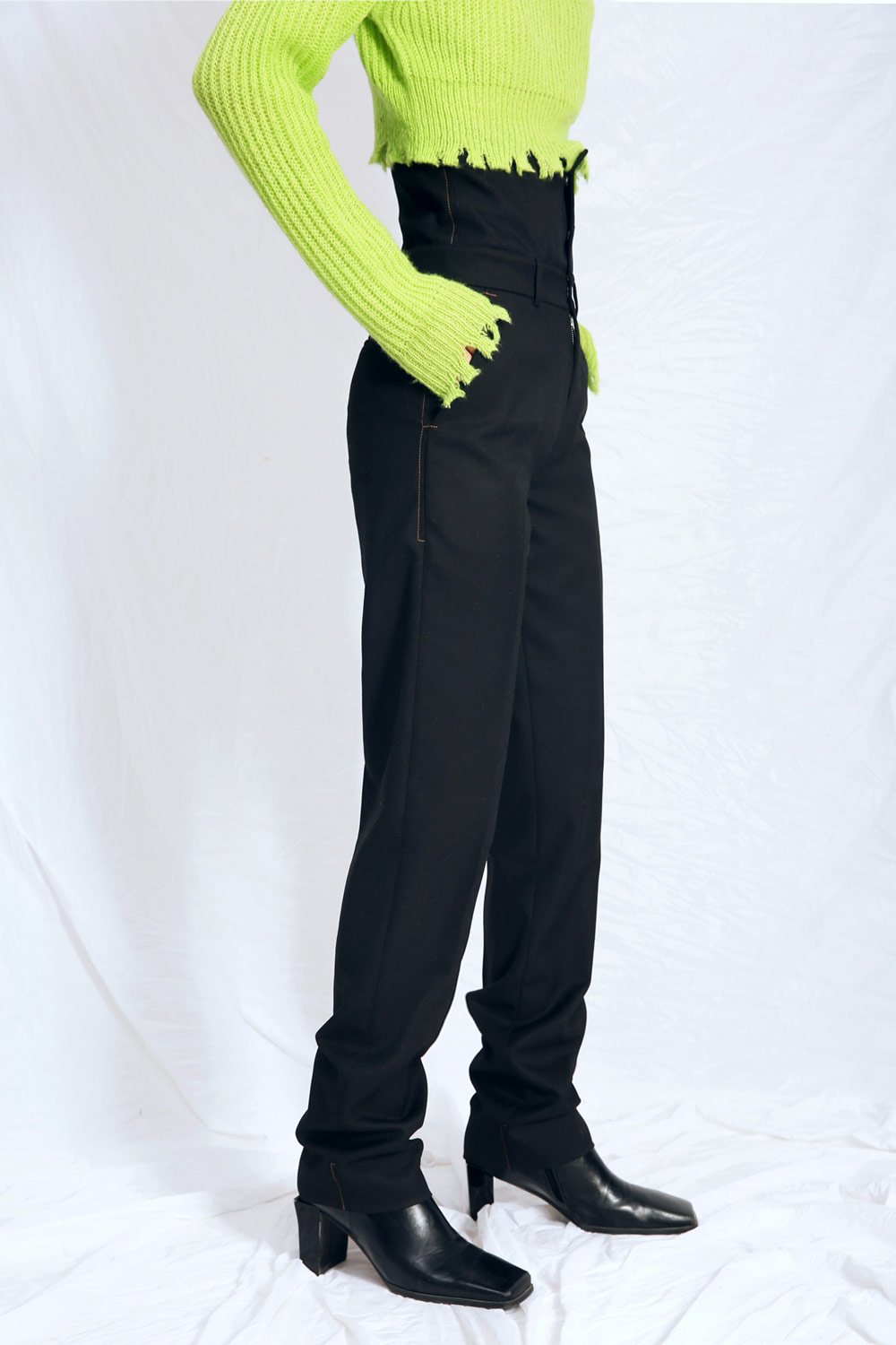 Lucency straight leg tailored mid-low rise pants with a detachable tick-tack slim high-waist corset.