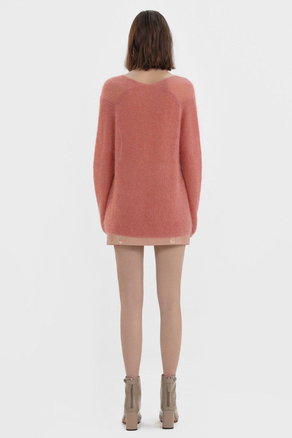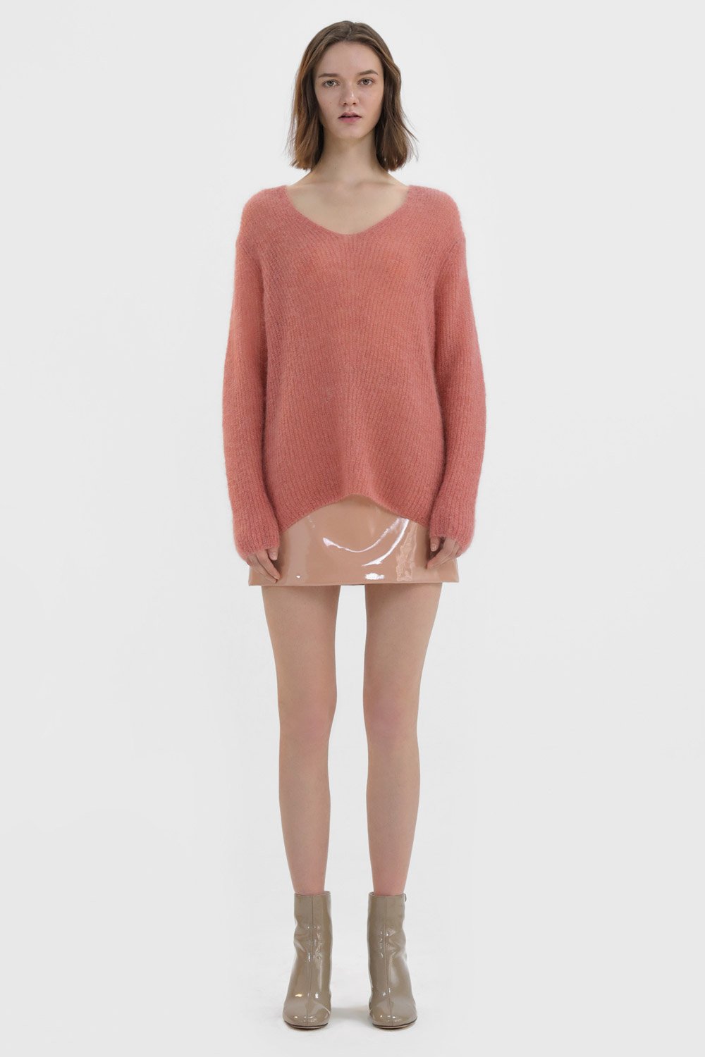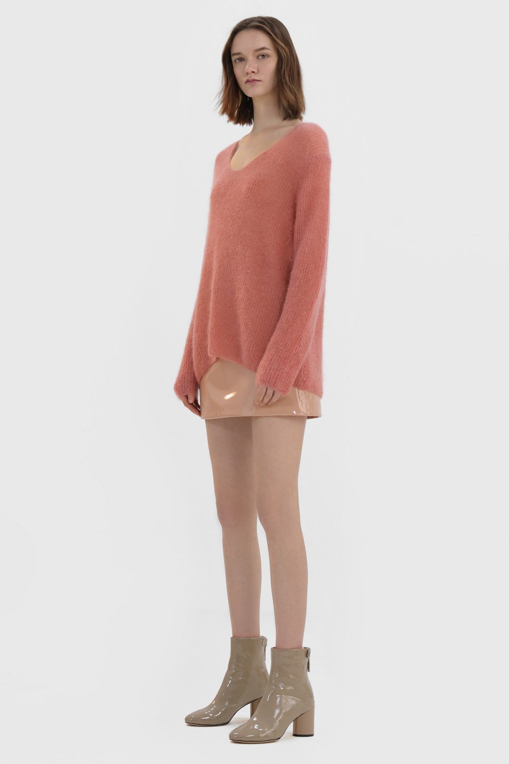 Yuel Xiang v-neck mohair knit thin semi sheer sweater in blush.