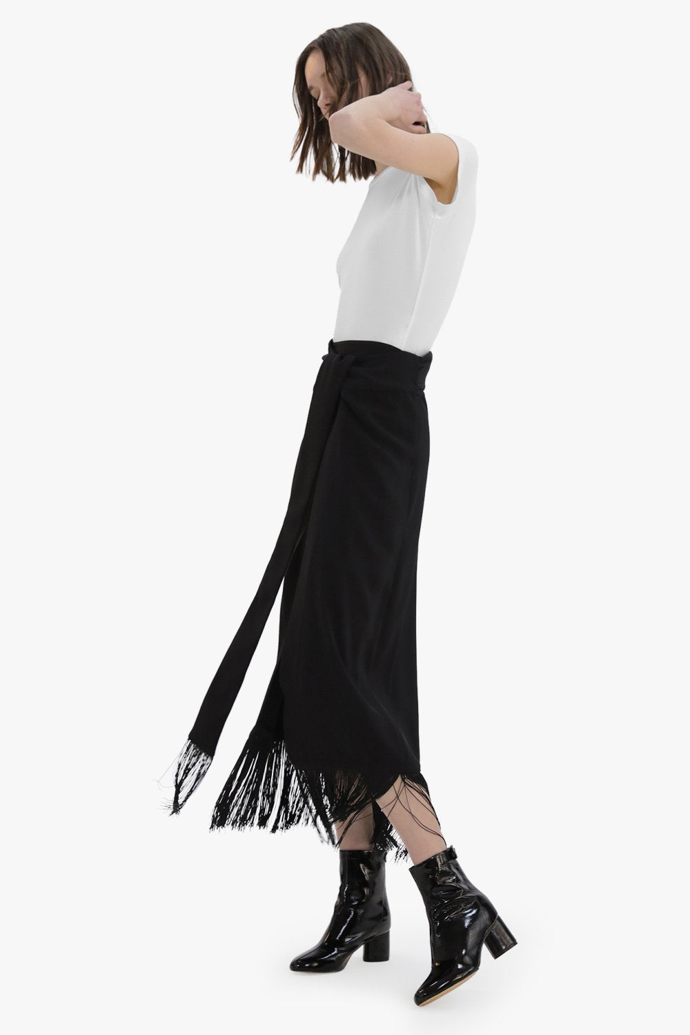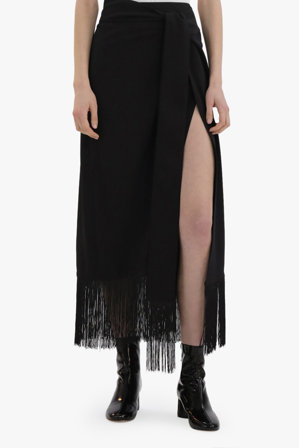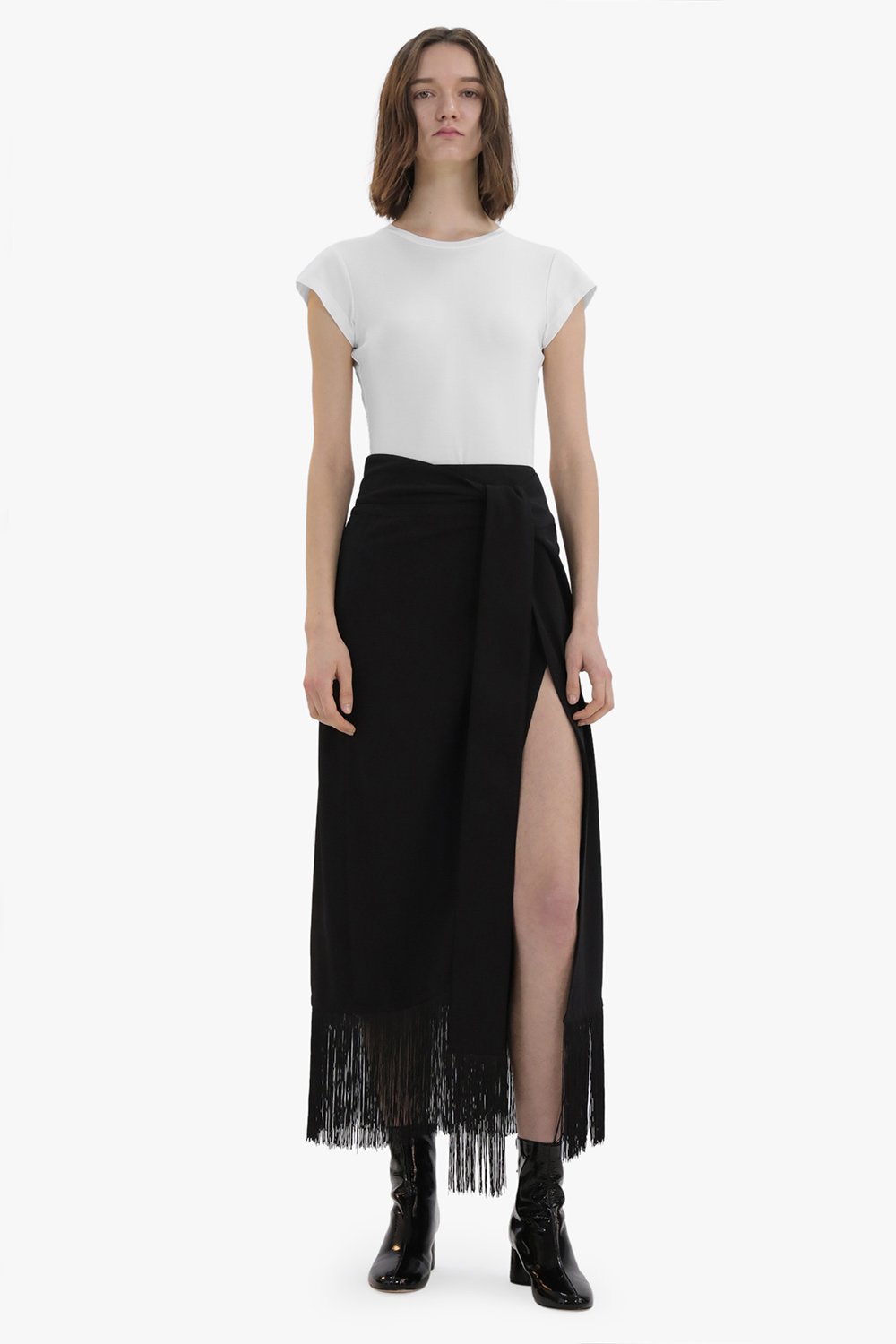 Yuel Xiang wrap chiffon skirt with tassel black.